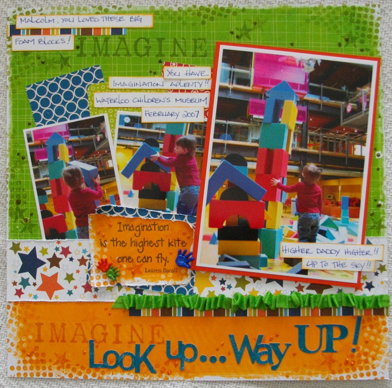 So here is my layout for today, featuring a quote from Lauren Bacall. I knew as soon as I read the quote what pictures I was going to use! A child's imagination is limitless!!